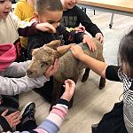 Ook de afgelopen week hebben we hard gewerkt aan het thema 'Lente'. Woensdag was natuurlijk het hoogtepunt met het lammetje in de klas! Het maakte heel veel indruk dat het lammetje ging plassen, maar veel kinderen hebben het lammetje geaaid en wisten precies welk geluid het lammetje maakte.