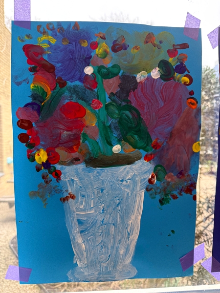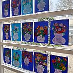 Vandaag hebben de groepen 5 de bloemen buiten gezet. Bloemen geplukt? Nee, we hebben met sjablonen vazen geschilderd en “gevuld” met een prachtig boeket. Wat zijn ze prachtig!