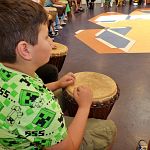De laatste schooldag! Met djembé-les, een stormbaan, fotolijstjes versieren en als klap op de vuurpijl een lekker schepijsje!