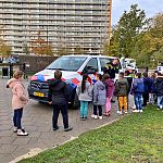 Gisterenochtend viel de kinderen meteen iets op, er stond 'verrassing' tussen de dagplanning op het bord! Wat zou het zijn⁉️ De kinderen kwamen er door ja/nee-vragen te stellen achter wat de verrassing was: er zouden twee politieagenten langs komen in de klas. Superspannend en leuk. Voordat de agenten in de klas kwamen kregen de kinderen wat tijd om een vraag te bedenken. Eenmaal klaar zagen de kinderen de politiebus al aankomen op het plein. Toen de agenten de klas in kwamen was de klas erg onder de indruk. Om de beurt mochten de kinderen hun vraag stellen. De kinderen hadden interessante vragen bedacht zoals:
