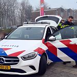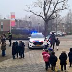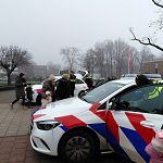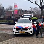 De kinderen aan de Baarnhoeve mochten een echte politieauto bekijken. De zwaailichten werden ook nog even aangezet. De kinderen stonden vol verbazing te kijken!