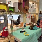 Voor het thema van de Kinderboekenweek 2021 "Worden wat je wil" is het hoekje van de gang bij het lokaal van groep 3a/4a omgetoverd tot dierenartspraktijk. Van muis tot goudvis en van poes tot slang, ze zijn allemaal patiënt in de kliniek van juf (eh, dierenarts) Christine. Alleen moeten sommige dierennamen nog even worden gecontroleerd.... :)