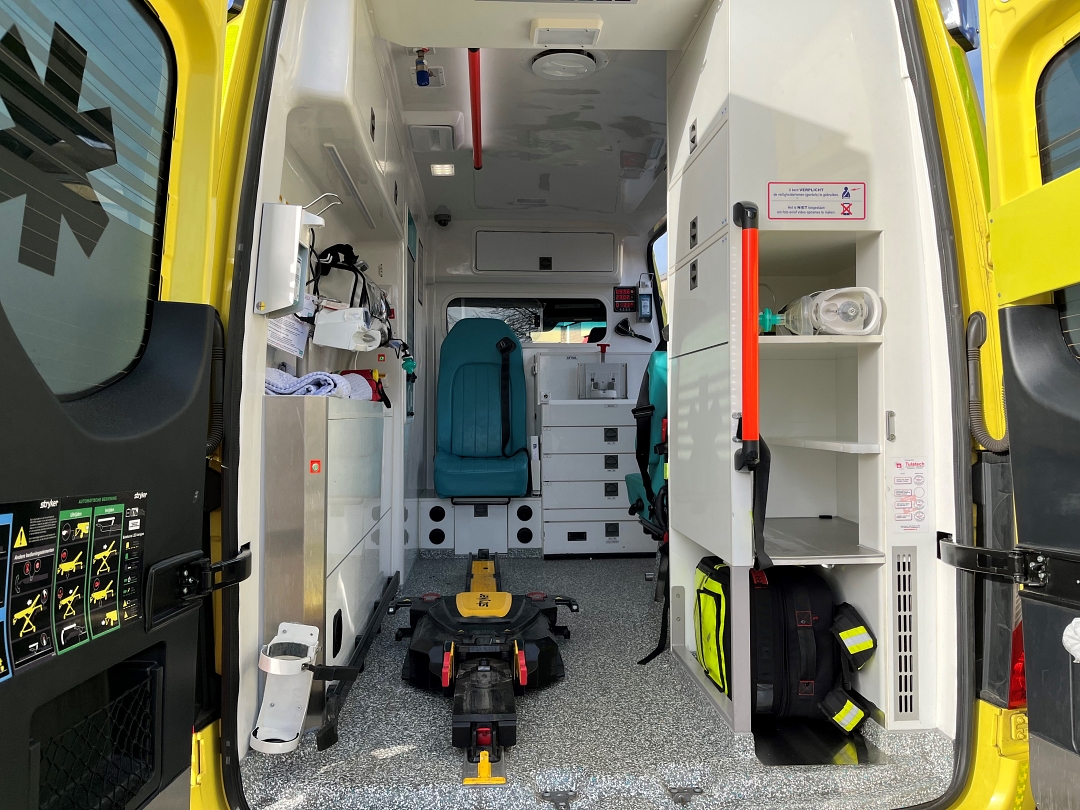 Daarna was het tijd om de ambulance zelf te bewonderen! De leerlingen mochten alles van buiten en van binnen bekijken en als extraatje werden de zwaailichten aangezet! 🚑