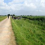 Groep 7b bezocht vrijdag 7 juni een schaapskudde bij de Adrianushoeve ten noorden van Schiedam. Het eerste deel van de excursie bestond uit de uitleg hoe de schapen bij elkaar worden gedreven door de hond, een bordercollie. Er werd ook uitgebreid verteld hoe deze honden worden getraind en welke commando's worden aangeleerd. Het was verbazingwekkend om te zien hoe adequaat de hond de kudde wist te dirigeren tot een bepaalde richting en hoe snel en gedisciplineerd de schapen daarop reageerden.