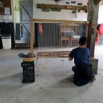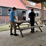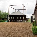 Ook konden de leerlingen terecht in de stal om daar bijvoorbeeld met het weefgetouw aan de gang te gaan. We leerden ook waar de term schering en inslag vandaan komt.