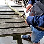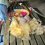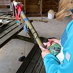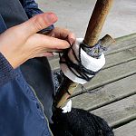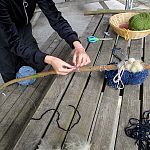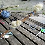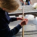 Deel twee van de excursie was het versieren van een herdersstaf met wol en gekleurd textiel.