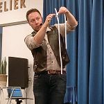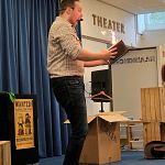 Wat een avontuur! Goochelaar Lars kwam bij ons langs. Hij vertelde een spannend avontuur over een cowboy en liet ons allemaal goocheltrucs zien. Hij had soms de hulp nodig van kinderen en juffen. Het was een erg leuke voorstelling, de kinderen hebben ontzettend genoten! 🎩