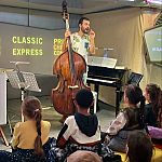 Gistermorgen mochten wij als eerste groep van de school naar het concert van het 'Prinses Christina Concours' in de Classic Express. Dit is een rijdende concertzaal, die deze week een hele week bij ons op de parkeerplaats staat. De kinderen hebben naar mooie muziek op de piano en een slagwerk geluisterd en kennisgemaakt met een wel heel groot en bijzonder instrument: de contrabas. De kinderen dachten eerst dat het een gitaar of mega-viool was!
