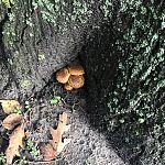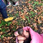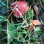 Bij een eikenboom hebben we eikeltjes gevonden, we hebben paddestoelen en herfstbladeren gezien, maar het allermooiste was: de vliegenzwam, de paddenstoel zoals we die kennen uit het liedje: "Rood met witte stippen"!