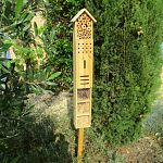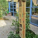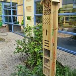 Onlangs heeft onze medewerker Rico twee insectenhotels in de patio van het hoofdgebouw geplaatst. Het zijn afscheidscadeaus van de leerlingen van de groepen 8 van het vorige schooljaar. Verder doen de druiven het erg goed op dit moment!