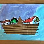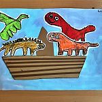 In plaats van Jurassic Park maakte groep 3 een Jurassic Ark, een boot vol met dino’s!