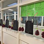Deze weken werken we over kerst in de klas. We hebben echte dennenappels versierd met verf en glitters. De kerstboom is dik onderaan en dun bovenaan. We hebben gemeten en geknipt. Ook zijn er kerstbomen gebouwd van duplo; bovenaan is de ster.