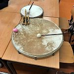 We hebben geoefend met ritmes klappen en tafeldrummen. Ook hebben we geoefend met instrumenten.