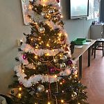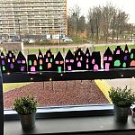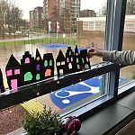Vorige week zijn we begonnen met het versieren van de klas voor de kerst, lichtjes de kerstboom en de huisjes voor het raam. Alleen de piek in de boom missen we nog, maar die komt nog.