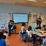 Vandaag hadden wij twee politieagenten in de klas. We hebben het gehad over waarden, normen en fatsoen. Maar ook over keuzes maken. Het is namelijk altijd een keuze! En elke keuze die je maakt heeft gevolgen!