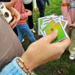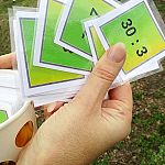 Twee teams stonden tegenover elkaar. Op de bijbehorende kaartjes stonden allemaal deelsommen.