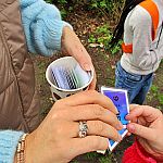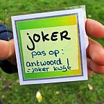 De leerlingen moesten elkaar tikken. De hoogste uitkomst van de deelsom wint. De leerling die verliest gaat snel een nieuw kaartje halen bij de teamleider. Dan hebben we ook nog de joker: