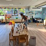 Vrijdag 19 september was Michelle bezig met de voorbereiding voor de komst van de peuters van de peuterspeelzaal. Een fijn begin voor de peuters om de auto’s langs het scheerschuim te rijden. Of toch erin?