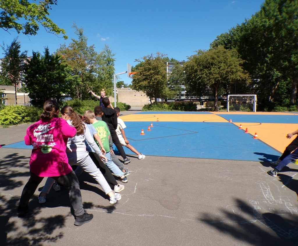 Daarna volgde een activiteit buiten, met onder andere dribbelen met de bal aan de voet.