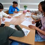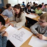 Maak in groepjes een tekening bestaande uit vier gelijke delen. Iedere leerling uit het groepje neemt een kwart van de tekening voor zijn of haar rekening.