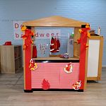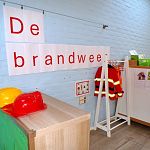 Het thema 'Zwaailichten en sirenes' in de peuterspeelzaal, met als onderwerp 'de brandweer'. De medewerkers van de PSZ hebben het weer geweldig ingericht! 🚒