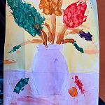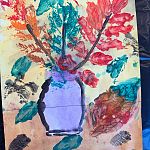 De leerlingen hebben een stilleven geverfd met waterverf en herfstbladeren afgedrukt. Ze mogen weer trots zijn op hun kunstwerken. Hierbij een paar mooie voorbeelden!
